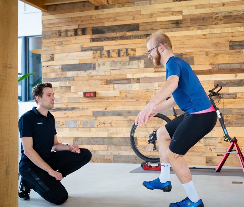 Als laatste kijken we of jij wel symmetrisch op jouw fiets zit. Deze gegevens leggen we naast de informatie van de intake en het lichamelijk onderzoek. Met alle gegevens komen we tot een plan om de klachten op te lossen.